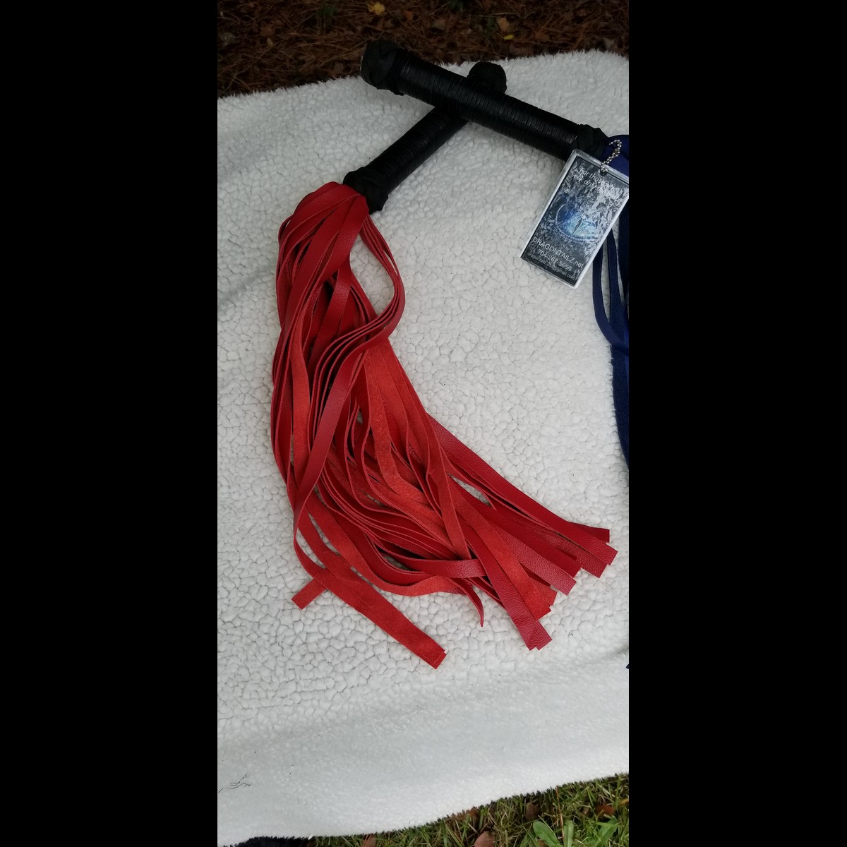 This elegant and heavy flogger with 36 falls and is constructed from the highest quality Italian leather. 4 weeks from time of order for shipment as these are custom made per order.